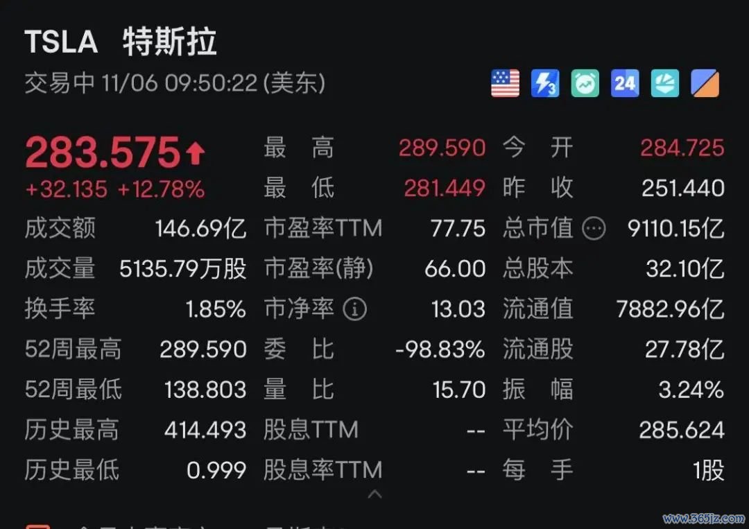 特朗普媒体科技集团大涨,盘中一度因波动性停牌。而被视作“特朗普概念股”的特斯拉也大幅上涨。