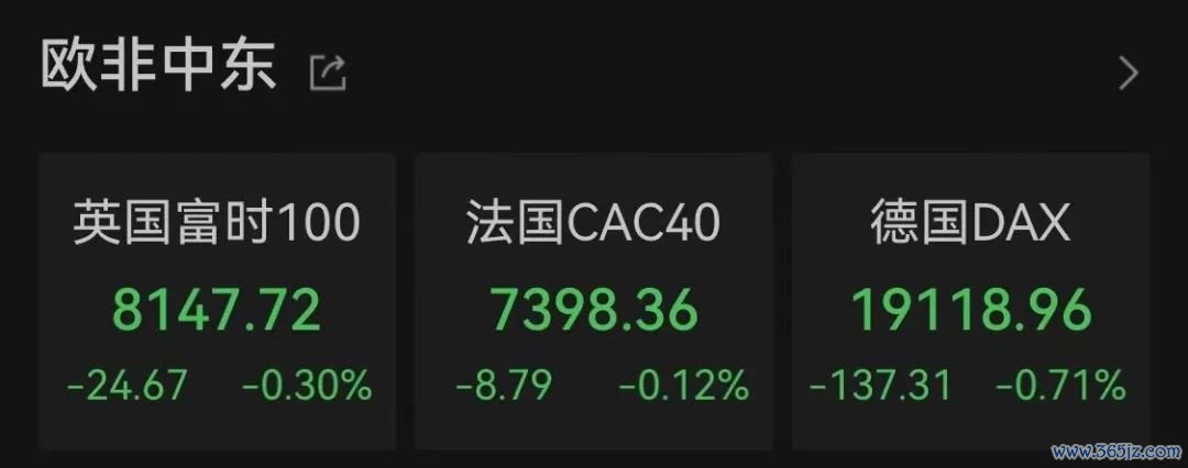 欧洲市场则出现全面跳水,其中英法德三国重要指数全部飘绿。